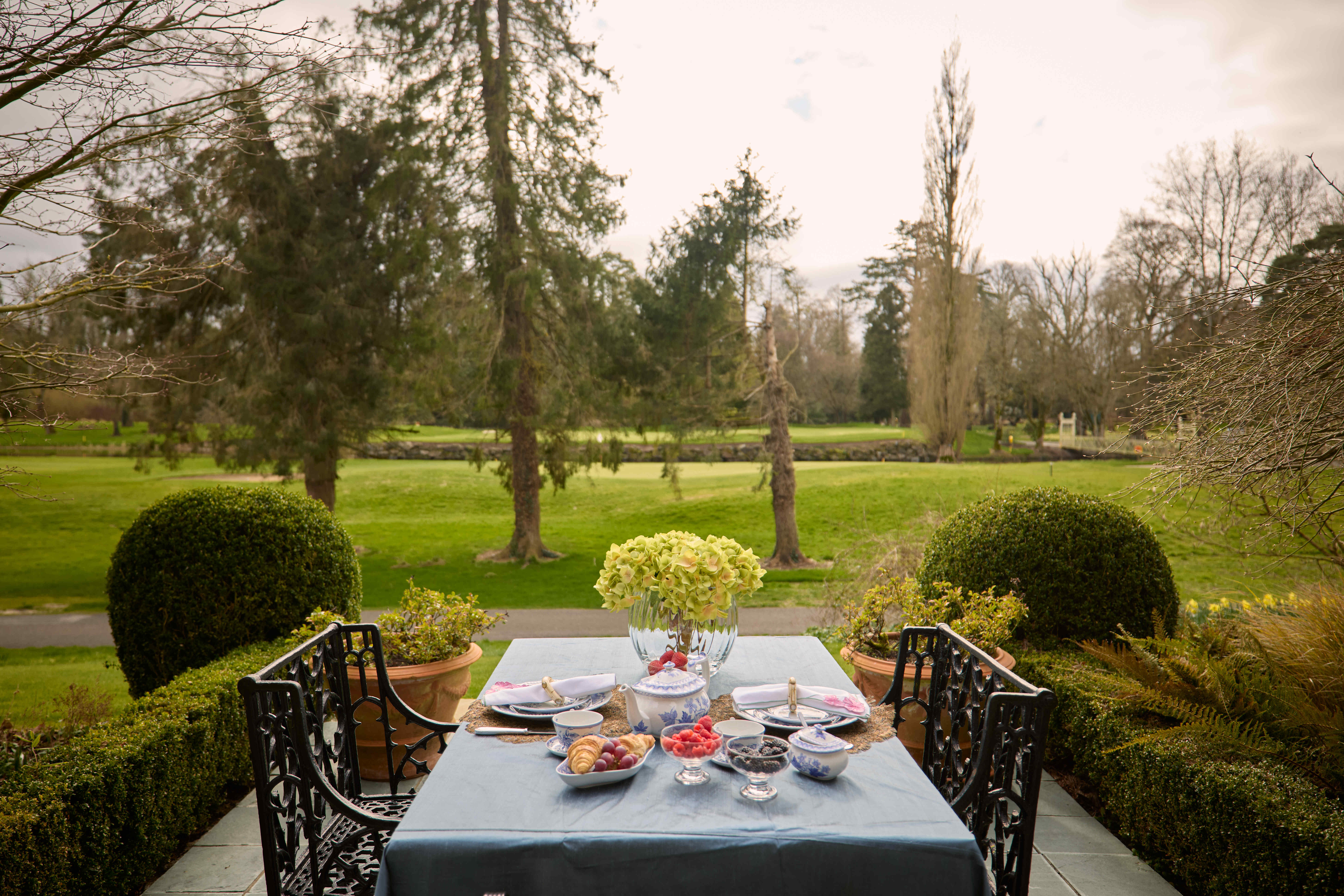 An open-air dining setting designed for slow meals and shared moments, surrounded by nature and a relaxed atmosphere.